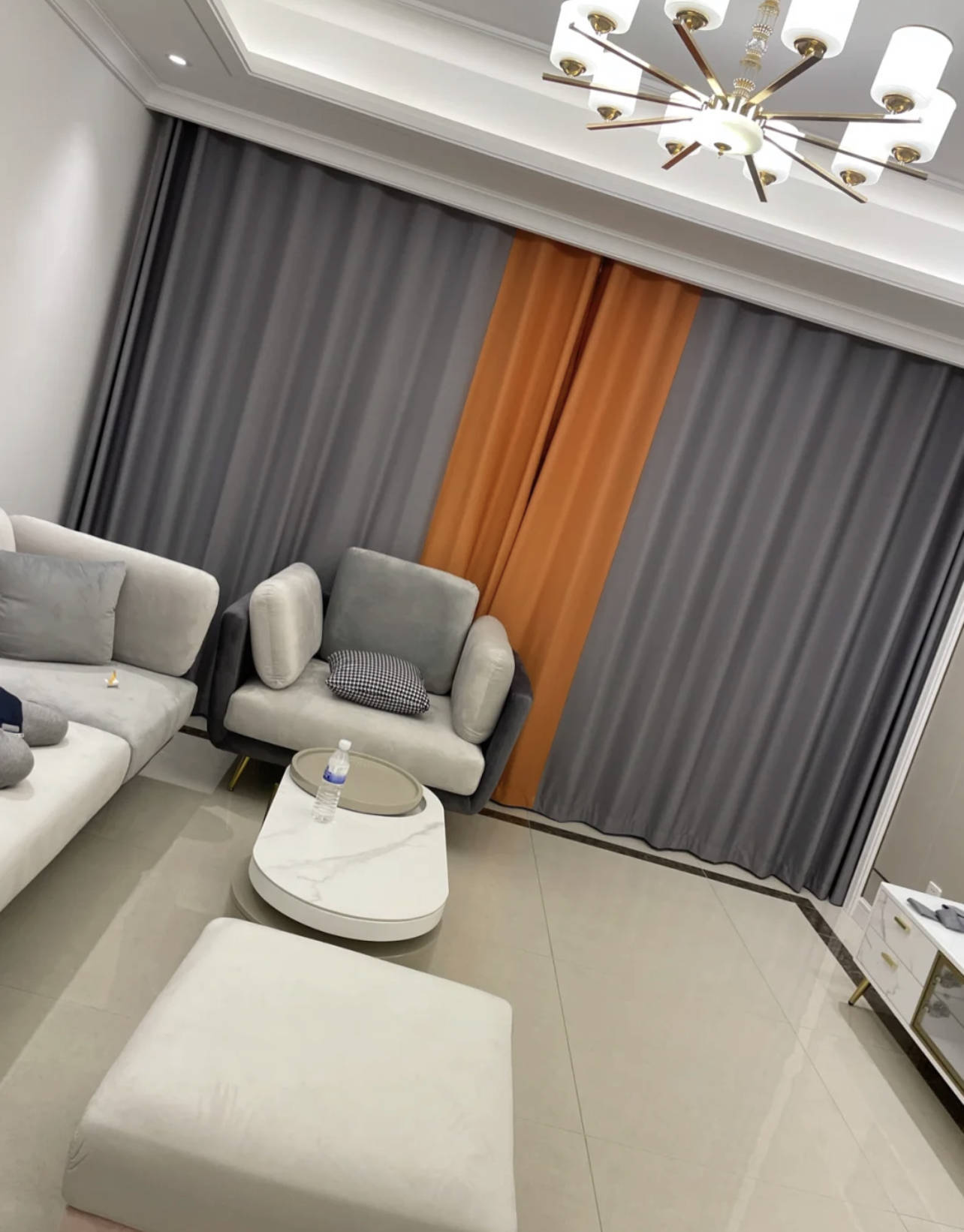 3、拼色窗帘任何一个拿出来单独看,颜值都不错,但搭配到自己家就不是那么回事儿了,大面积撞色,配色门槛还是比较高的,新小住身边的,十个有九个都翻车了。