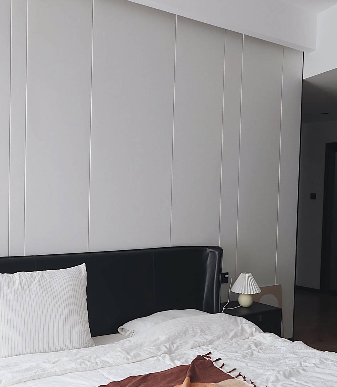 8、墙面软硬包软硬包的区别就是,软包有填充物,摸起来软软的,硬包没有填充物,摸起来稍硬,两者装上后,都有轻奢风的既视感。