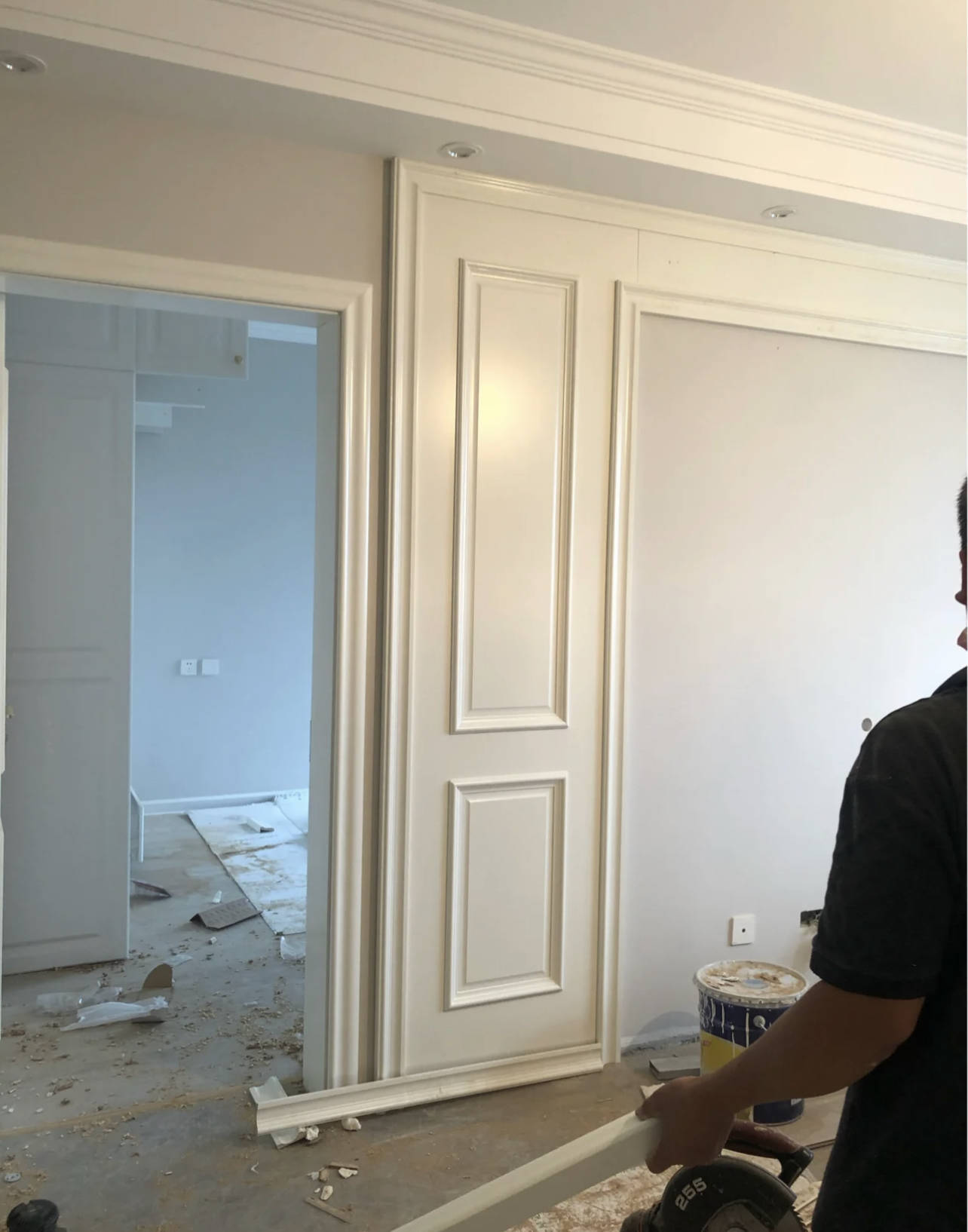 新住建议:与其花那大价钱,不如用石膏线,省钱,整体性也比护墙板要好。
