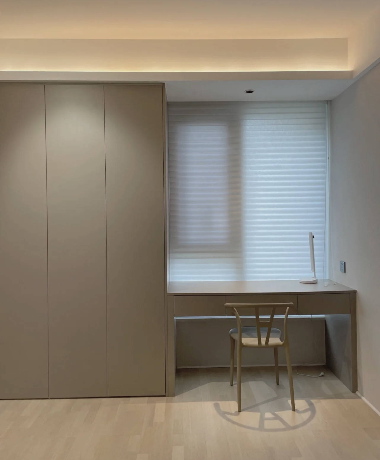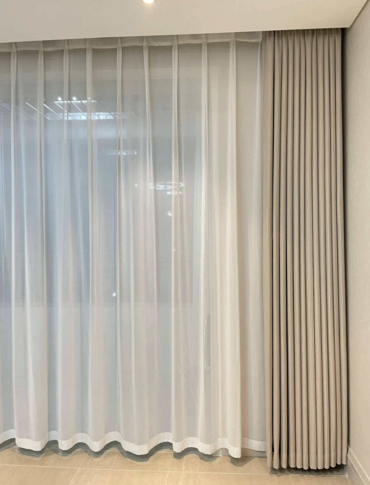 新住建议:卧室内,还是建议传统布帘,隐私性、遮光性都更好,其他位置可考虑半截帘。