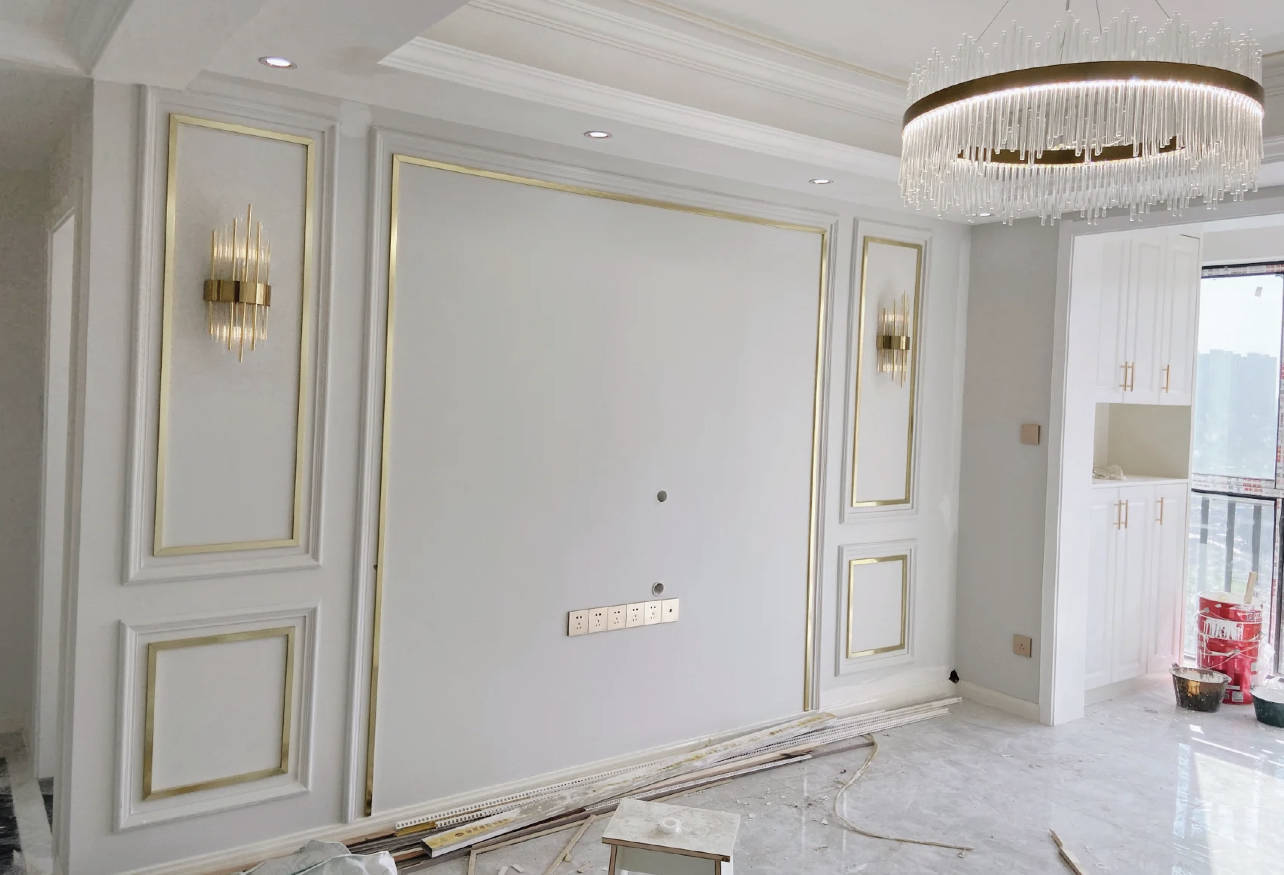 新住建议:金色装饰条不建议大面积使用,实在喜欢这种感觉,建议将家里的小物件用金属条来点缀。